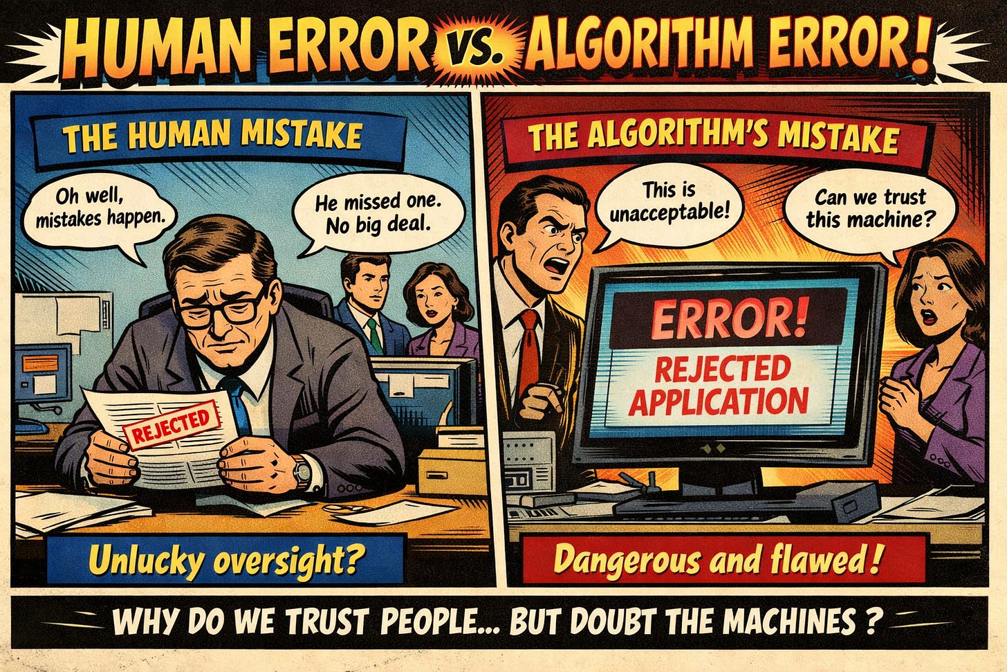 There’s a curious pattern in how people judge mistakes. When a human makes a mistake (e.g., an admissions officer overlooks a failing student’s application), we might shrug it off as an unfortunate oversight. However, when it’s an algorithm making the exact same error, suddenly it’s evidence that machines can’t be trusted with important decisions.